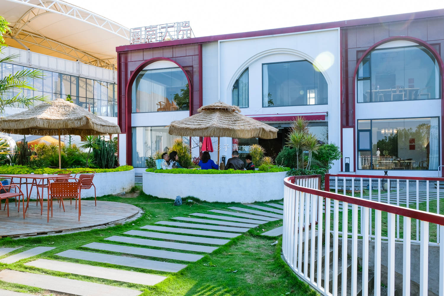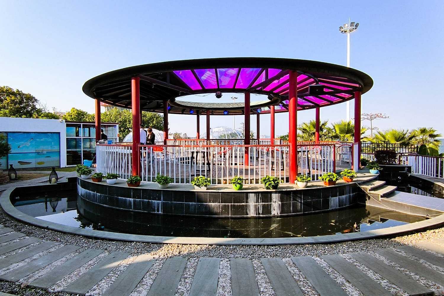 这家闽南大院位于观音山沙滩的正后方,是一家餐厅更是一处不错的网红打卡地,偷偷告诉来这里玩耍的你,就算不消费也可以进来打卡拍照哦!闽南大院布置得十分舒适,户外宽敞舒适,有天幕有凉亭,更有超人气的泡泡屋!