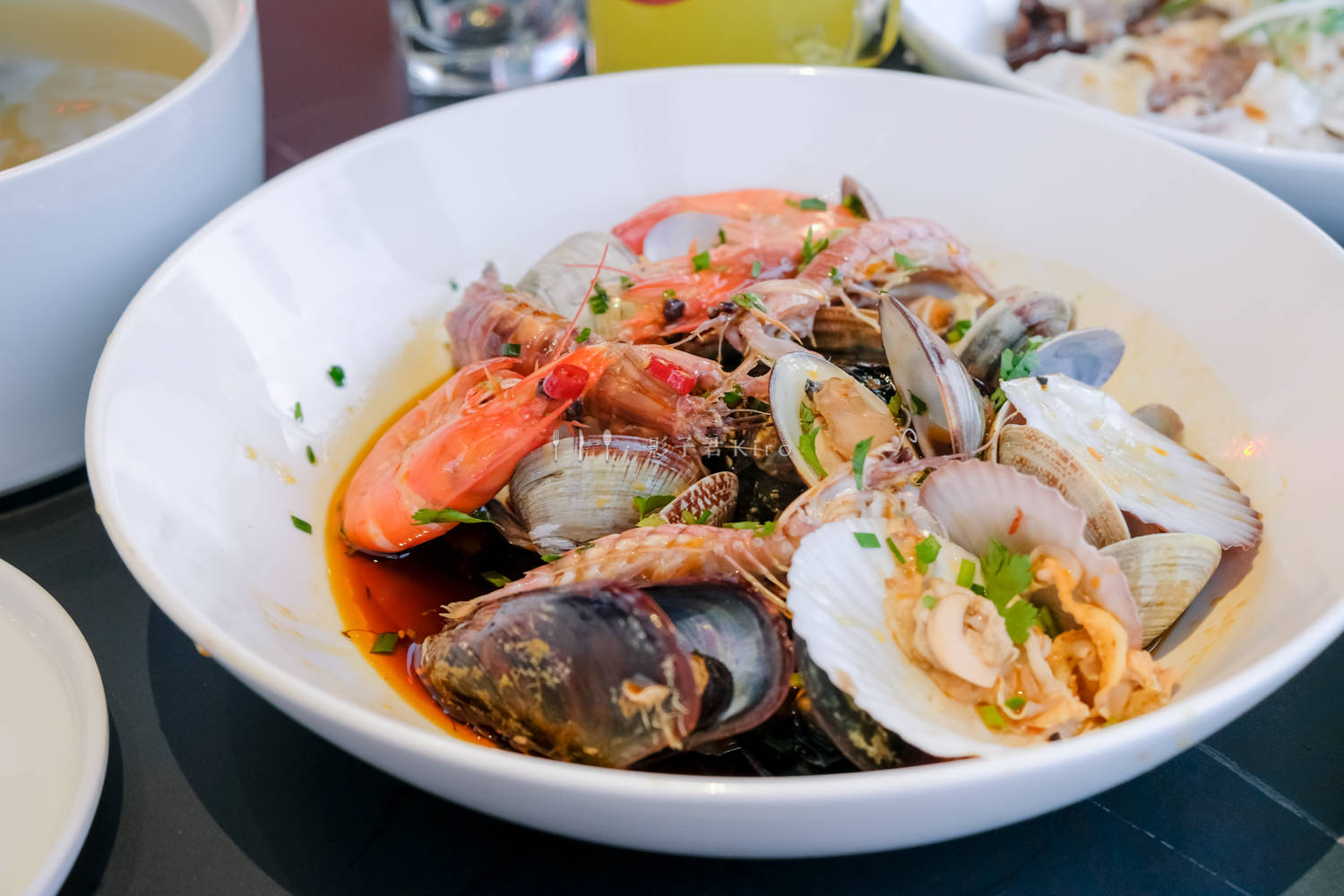 我和老婆,我妈和女儿,我们就四个人,本着节俭的传统美德,也没敢点太多,只点了三菜一汤一主食。龙虾、海鱼、贝壳类拼盘、蛋炒饭和海鲜汤。虽然不见得有多豪华,但是却也十分好吃接地气,地道的闽南味,连我妈都大加夸赞!
