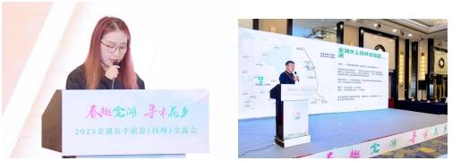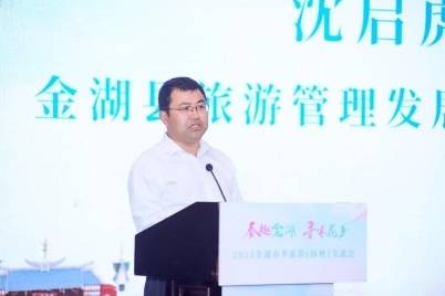 金湖县旅游管理发展中心副主任沈启虎在致辞时表示,金湖历史上隶属于扬州管辖,金湖与扬州一线牵,同心同向,一衣带水,在文化上一脉相承,扬州是金湖的重要客源地。希望以此交流会为契机,在学习扬州旅游发展的先进经验的同时,构建两地客源互送、互利共赢的良好发展格局。
