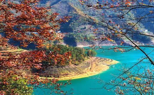 金秋时节,群山红遍,层林尽染,流金岁月中一湖碧水,一湖蓝天,在五彩斑斓之间,显得妩媚动人,惹人迷恋。