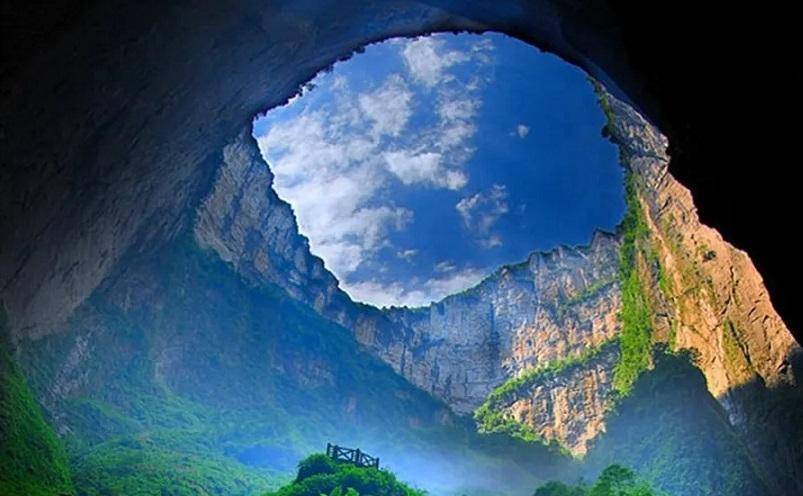 天坑,是喀斯特漏斗的俗称,是地球第四纪演化的重要见证,地理学上叫“岩溶漏斗地貌,大部分位于中国,主要是由地下暗河长期冲击碳酸盐岩层,造成岩层塌陷而形成的地质奇观。