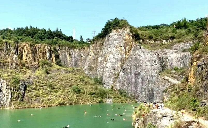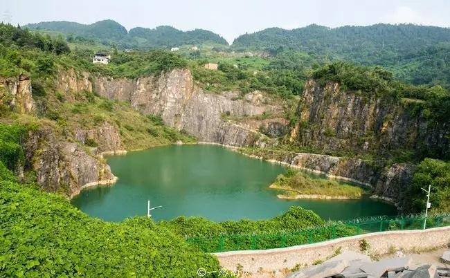 这个矿坑里的湖水也呈现出一种特别魄人心神的颜色,据说是与矿坑里残留的矿物质有一定关系,也不知道有没有科学依据。