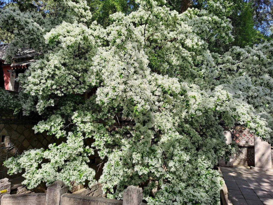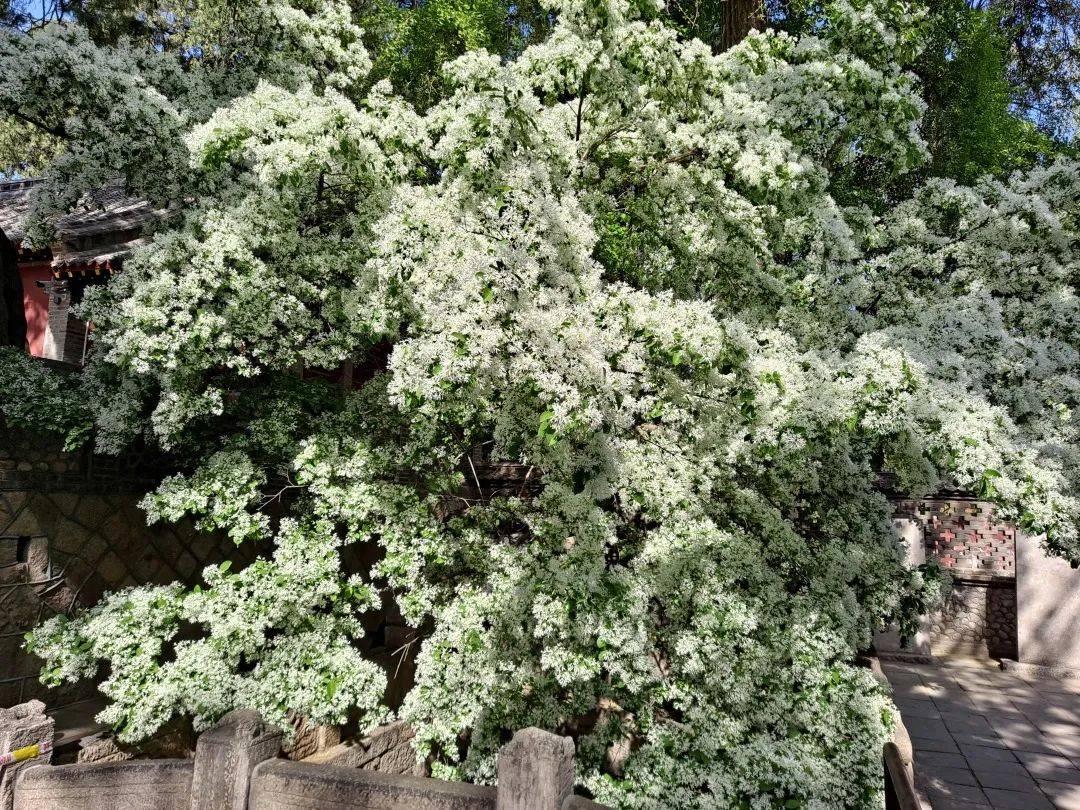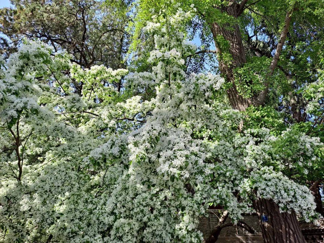 在泰山脚下的王母池里,不同于大自然中的姹紫嫣红, 有一种洁白似雪的花朵悄悄盛开了,这就是流苏。