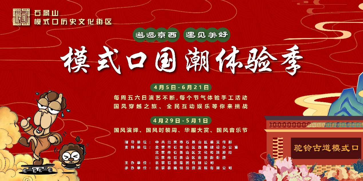 届时,我们将诚邀优秀的民间文化艺术作品、演艺演出团队来模式口历史文化街区进行作品展示及节目展演,丰富街区的艺术文化元素和精神文化内涵。此次活动将在模式口官方自媒体矩阵、石景山区融媒体等平台进行全程系列报道。模式口国潮体验季期待您的参与!让我们感受历史文化街区的同时,开启一场沉浸式国风之旅吧!