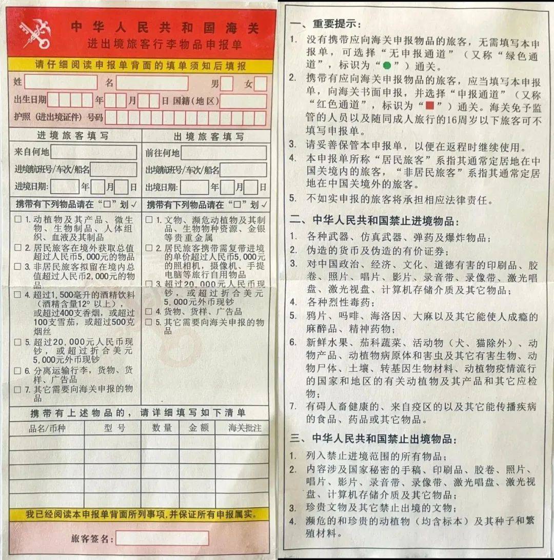 根据《中华人民共和国海关对进出境旅客行李物品监管办法》第三条规定:进出境旅客必须将所带的全部行李物品交海关查验。在交验前,应填写旅客行李申报单或海关规定的其他申报单证向海关申报;或按海关规定的申报方式如实向海关申报。第六条规定:旅客行李物品,应以自用合理数量为限,超出自用合理数量范围的,不准进境或出境。