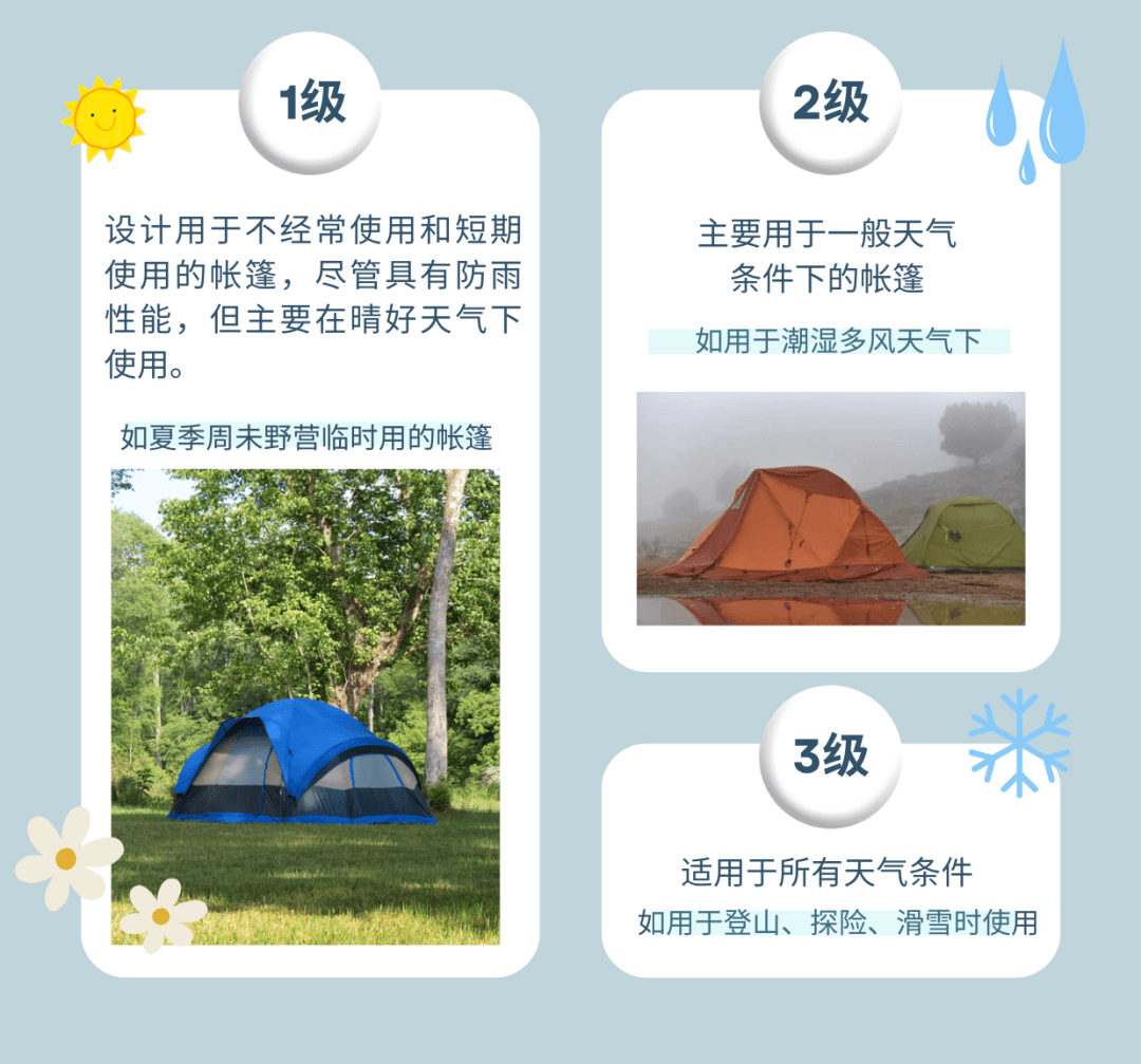 选购时,除了关注帐篷等级,我们也可以通过使用场景来进行初步判断