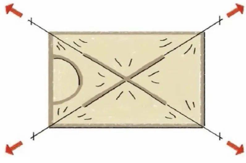 如果是有营线的帐篷,搭建时要注意绷直营线,顺着营柱延长后的直线方向拉,确保四角受力,帐篷没有塌陷。如果需要扎钉,注意钉子和营绳的角度呈90°为最佳,此时绳的受力度最大,帐篷更加稳固。