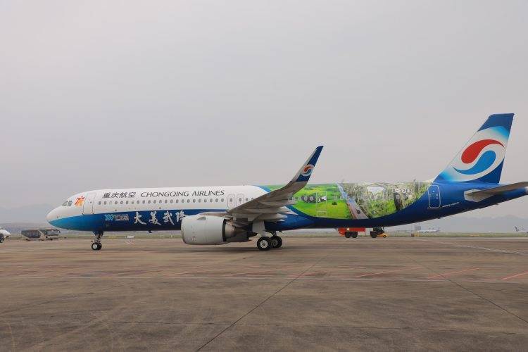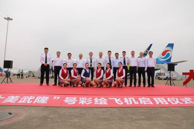 这是重庆航空与重庆市武隆区合作的首架实景彩绘飞机,致力于通过“旅游+航空”组合模式,不断延伸重庆文旅产业对外开放的“空中桥梁”。