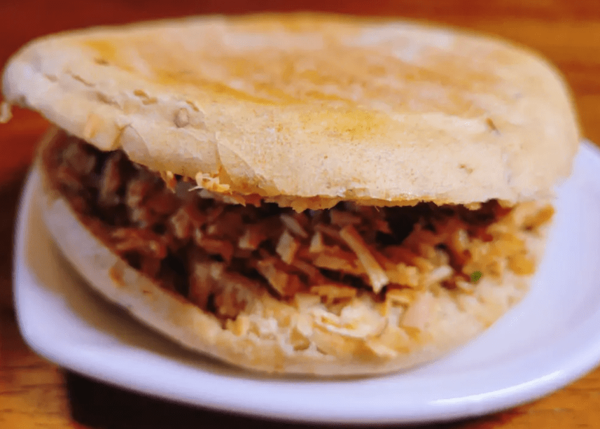 我们称这种纯肉的肉夹馍最为正宗。不过有的地方也会在肉里面放入剁成沫的青椒,吃起来味道也特别棒。