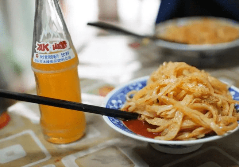 当然,吃凉皮可少不了冰峰,西安人的标配。冰峰是西安本土的一款饮料,玻璃瓶装,瓶子喝完还能回收。之前喝是3块钱一瓶,好久没喝了也不知道啥价格了。冰峰并没有其他品牌饮料鲜浓的果汁味,反而喝进嘴里一股工业香精的味道,但西安人就是很爱。