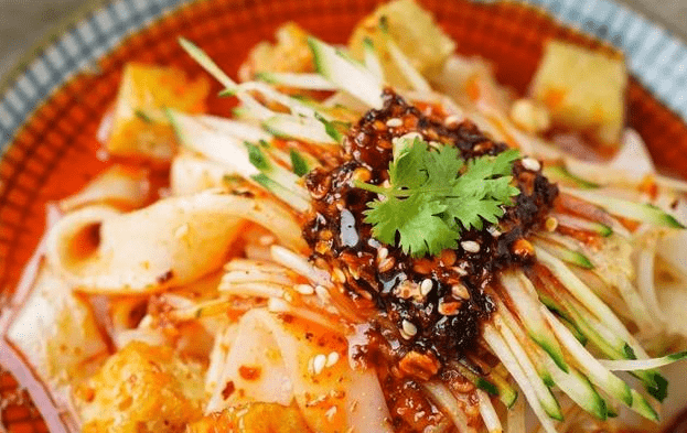 西安的凉皮美得很,尤其是宝鸡的擀面皮绝绝子。西安的凉皮有种,米皮、面皮和擀面皮,吃的时候也可以两掺或者三掺。对于小编来说,我还是更喜欢吃擀面皮,劲道爽口。西安当地香辣的油辣子浇上去,倒点香醋,香美了。
