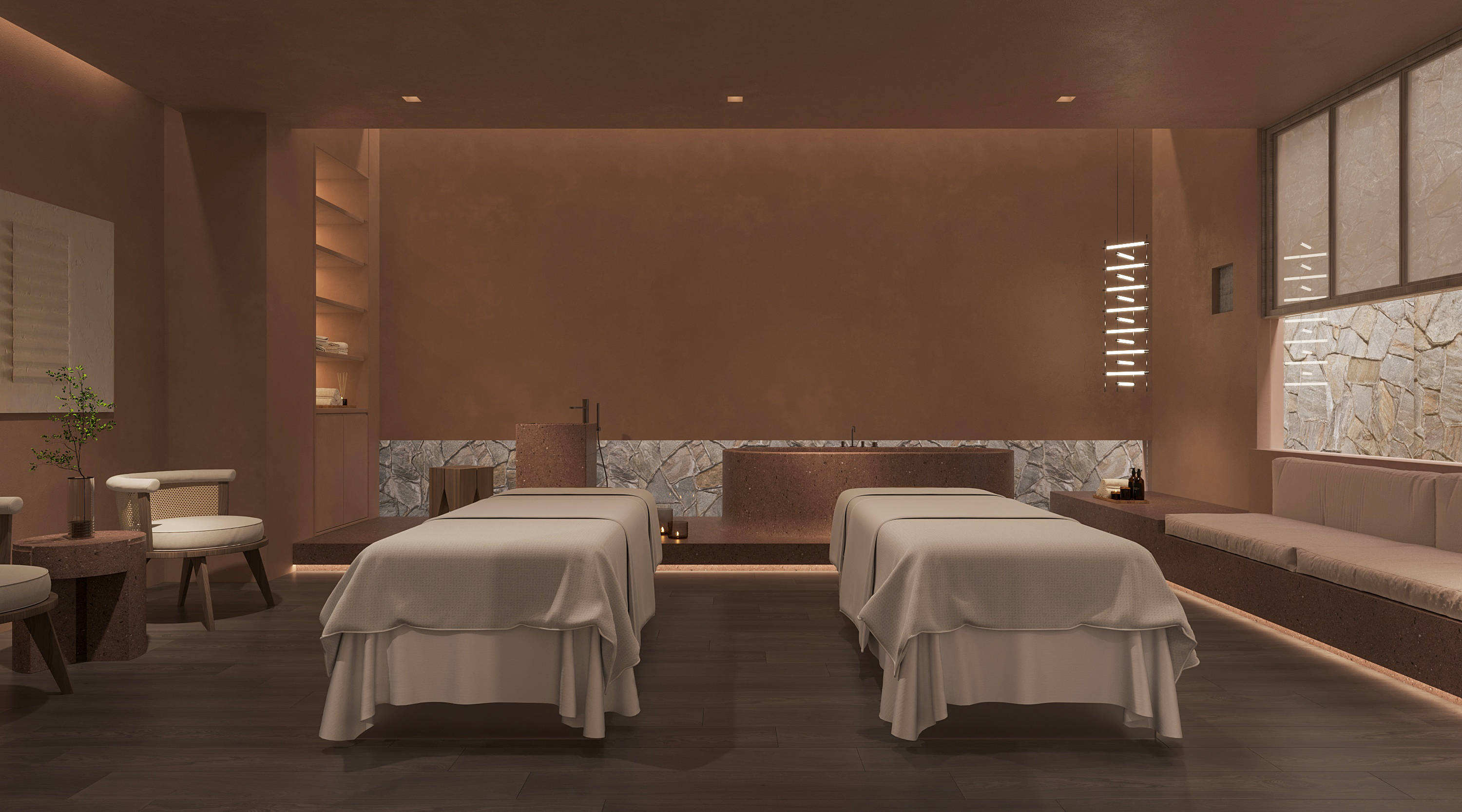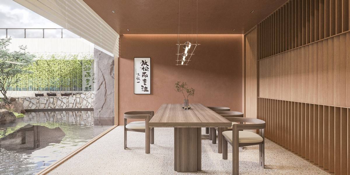 水疗茶艺休闲中心位于酒店负一楼的下沉式广场内,设计主题以接近自然的理念,庭院内的水景穿插并引入室内,圆石,树木,水流全部融合在一起。晨起夕阳时,光影舞动,约好友三五观景品茶,惬意自在。无论休闲还是商务之旅,这里都是放松身心、焕发活力的理想之选。