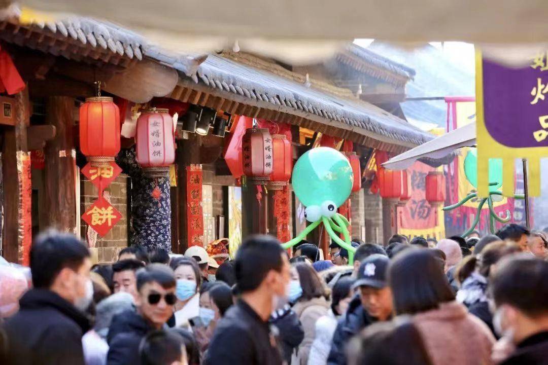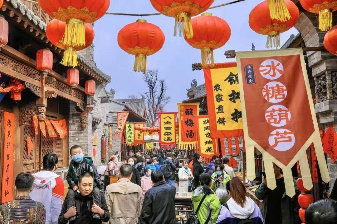抵达老街第一眼,便被这里的古朴典雅和热闹烟火气所吸引。街区建筑复刻了西府地区的各地代表性民居,风格明显,三条街道并列延伸,文昌街、丰膳街、羽阳街依次蜿蜒。进入街区,旌旗飘扬,各种食物的香气四溢飘散,人声鼎沸,面对琳琅满目的美食店铺,顿感食指大动。