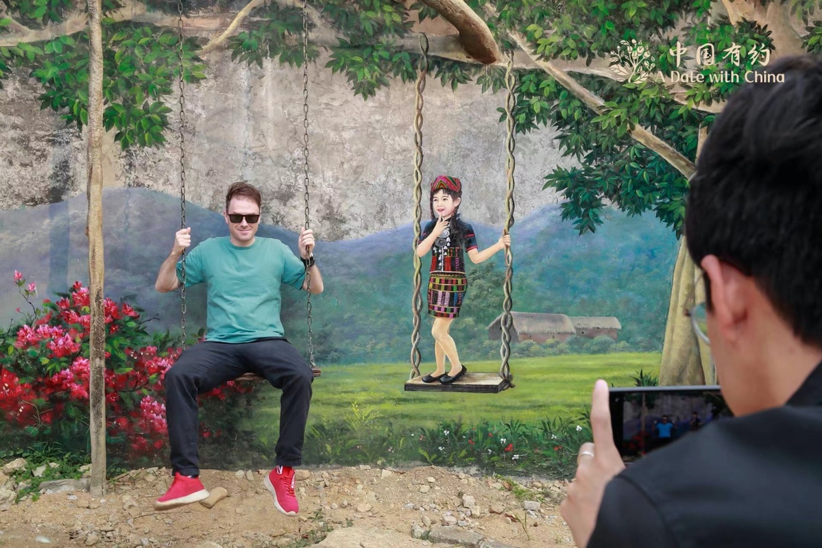英国籍网络名人托比正在毛纳村体验