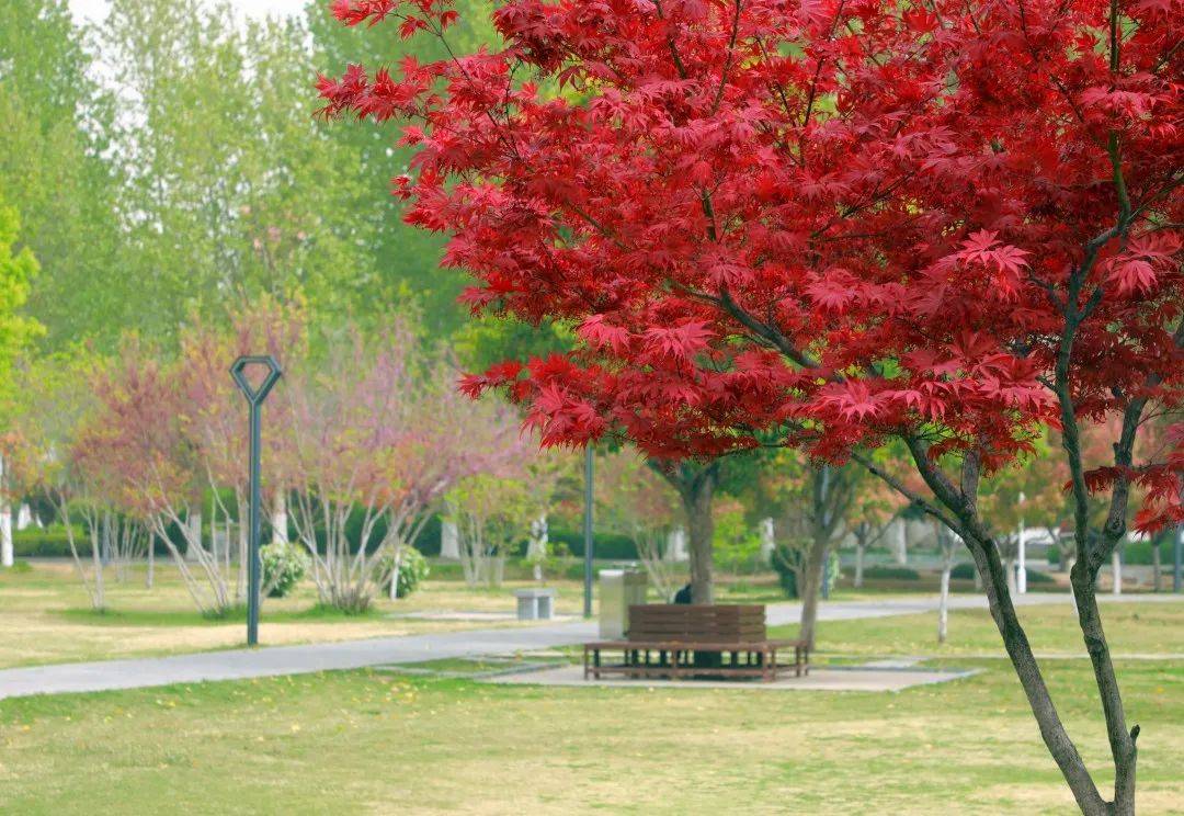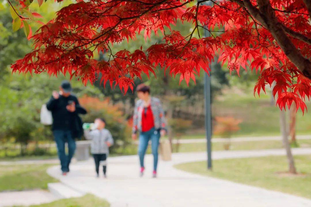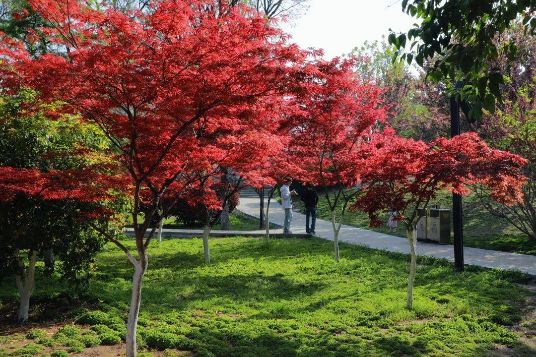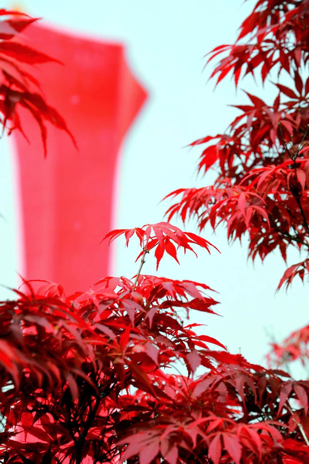 商丘市日月湖景区的枫树已经迫不及待换上“红妆”,刺眼的红色铺满枝头,夺目而明艳。