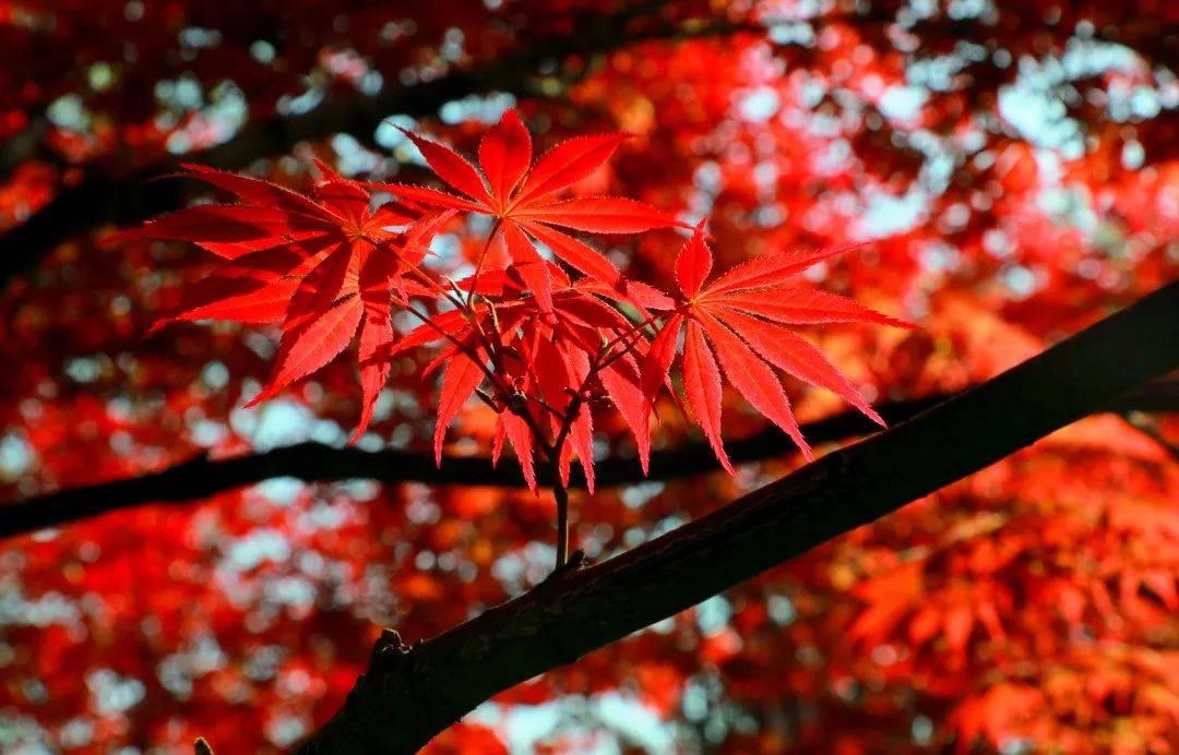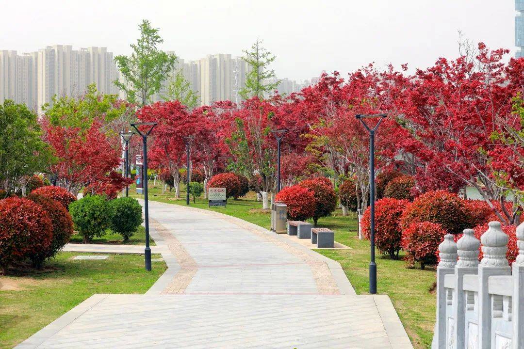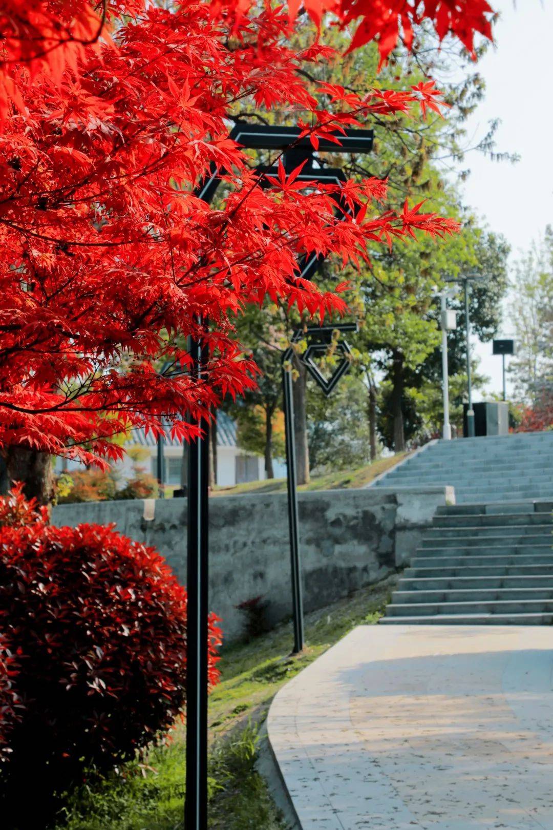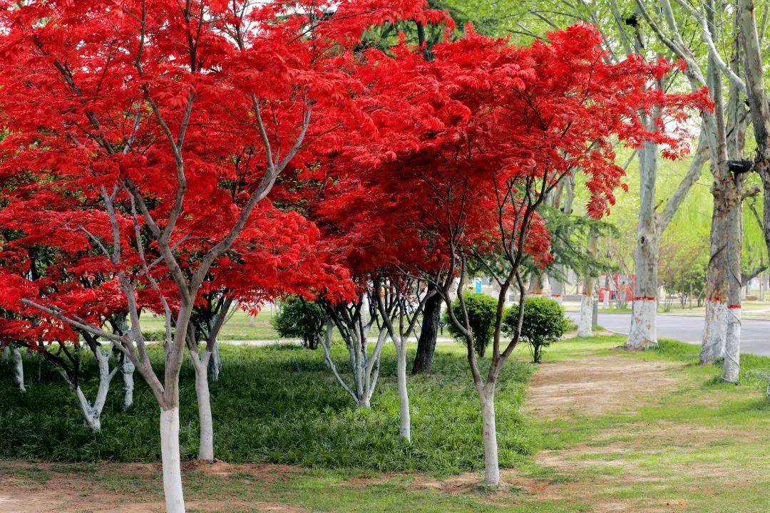 商丘市日月湖景区的枫树已经迫不及待换上“红妆”,刺眼的红色铺满枝头,夺目而明艳。