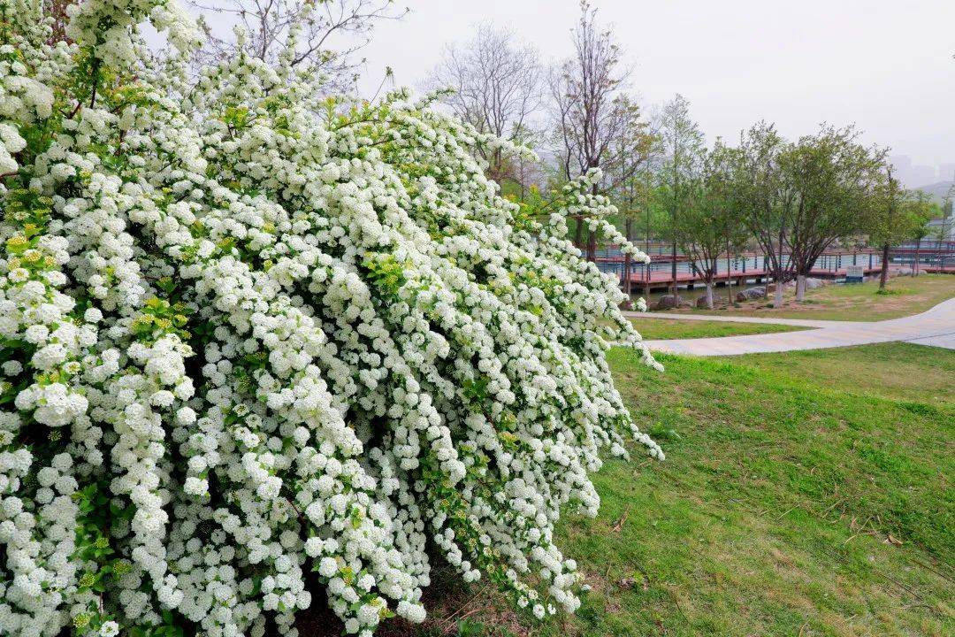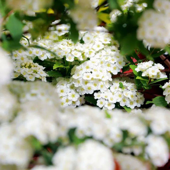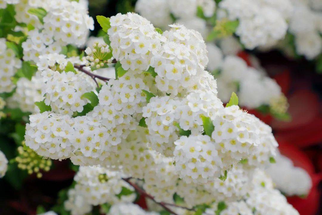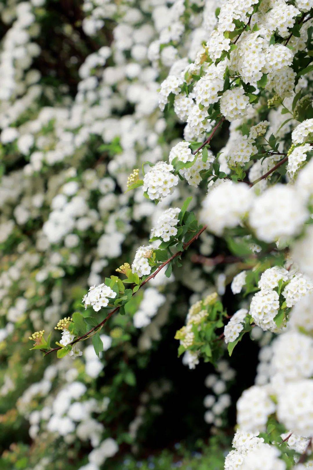 绣线菊盛开时枝条全部为细巧的花朵所覆盖,形成一条条花带。淡淡的香气,弥漫在空气里,惹人喜爱。