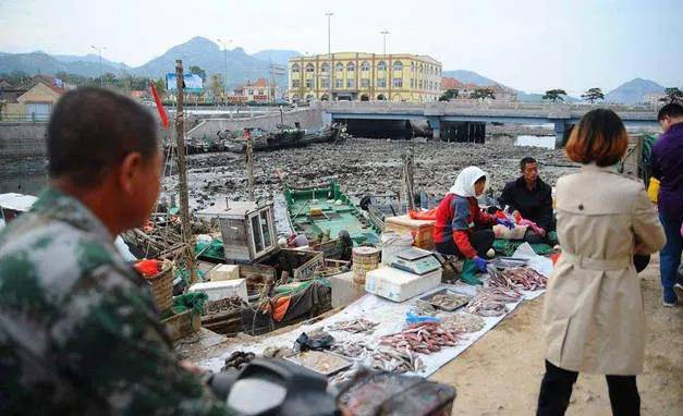 青岛最为著名的海鲜就是“红岛蛤蜊”了,红岛蛤蜊就产自红岛。每天大量的红岛蛤蜊在红岛渔港码头卸船,从船上卸下来的蛤蜊,称重后被装在排队等待的货车上。不仅有红岛蛤蜊,还有红岛海蛎子、各种鱼、虾、蟹、螺类等海鲜。