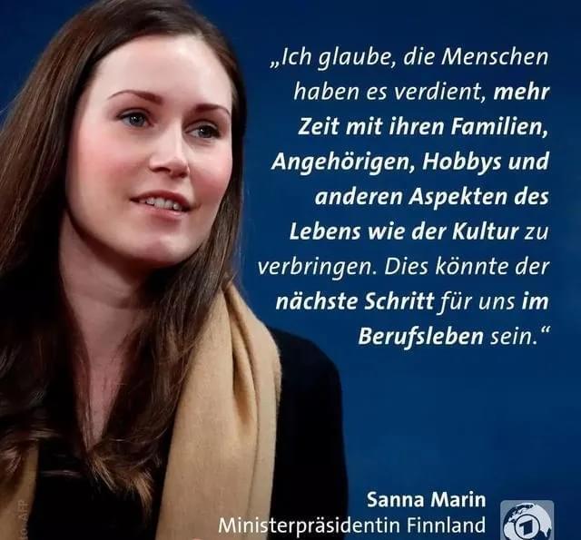 芬兰总理Sanna Marin推动了当地的1周3休制度