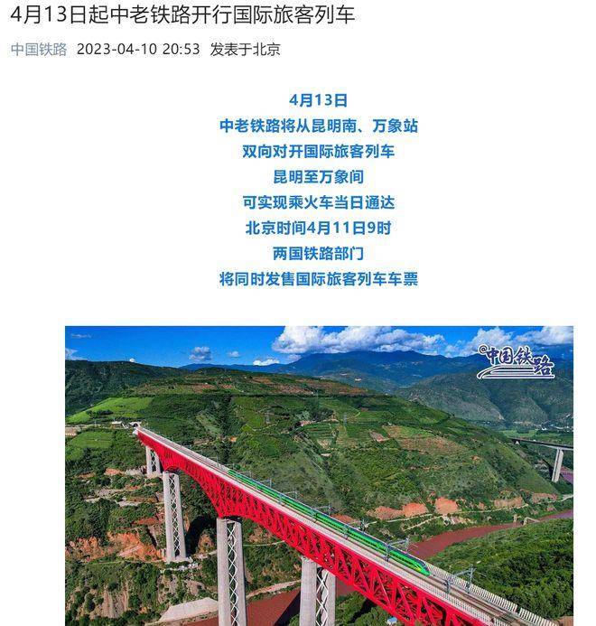4月13日起,中老铁路将从昆明南、万象站,双向对开国际旅客列车,