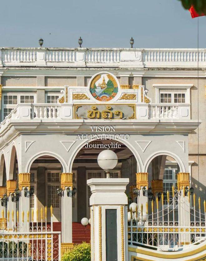 它的拱门基座是典型的老挝寺庙雕刻和装饰,充满佛教色彩的精美雕刻,展示了老挝传统的民族文化艺术。