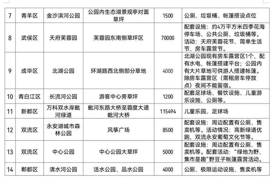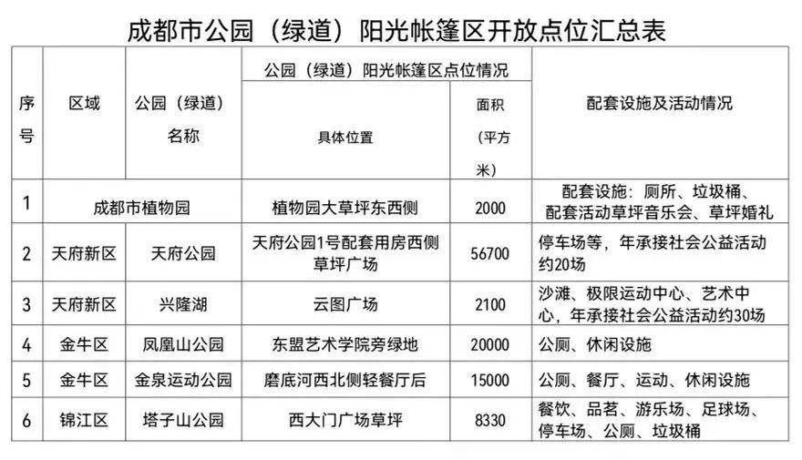 此外,政府部门也在推广越来越多的免费公园露营点位。今年3月份,2023成都市公园(绿道)阳光帐篷区开放点位公布,包括青龙湖、凤凰湖公园在内,成都多个区(市)县都实现了在公园绿道里露营。也就是说,市民不需要去专门的营地,就可以实现露营,成本更低。