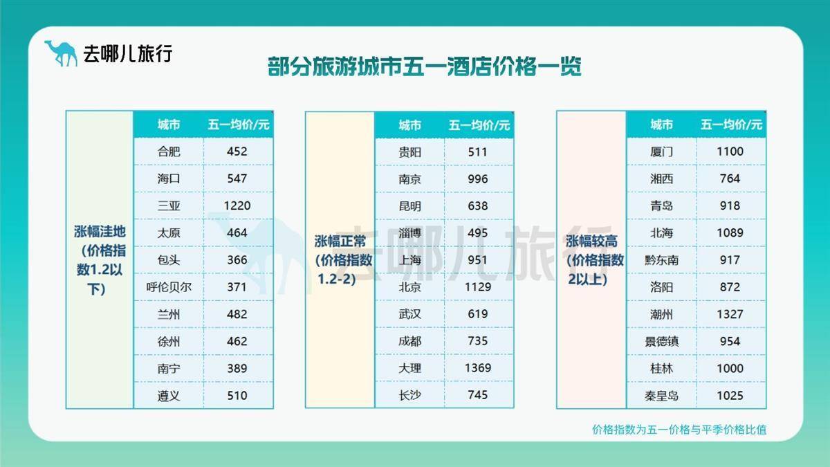 尽管五一预订火爆,依然存在一些可“捡漏”的目的地。据去哪儿统计,广东阳江、青海西宁、山西太原、甘肃兰州等目的地酒店预订尚未起量,广东东莞、贵州遵义、江苏徐州、广西南宁等地酒店价格并无明显增长。