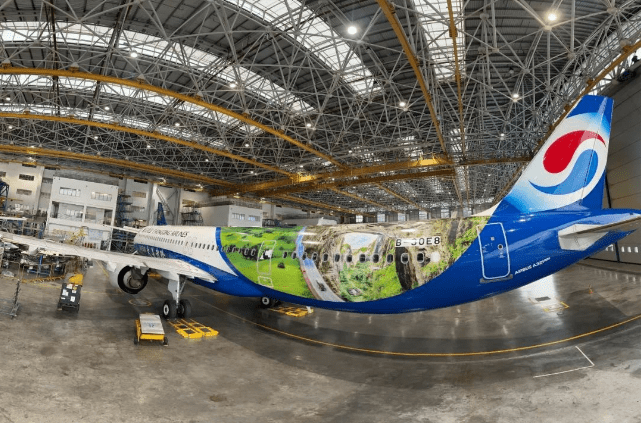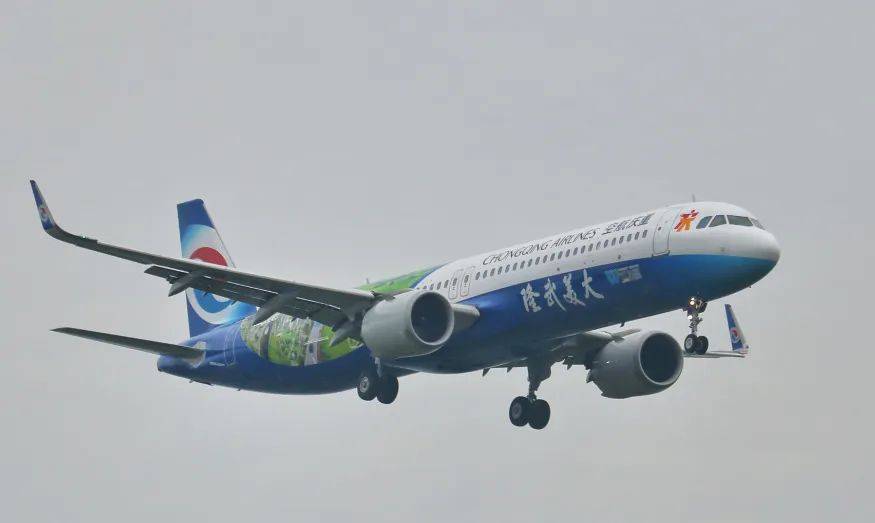 这是重庆航空与重庆市武隆区合作的首架实景彩绘飞机,落地后,这架注册号为B-30E8的A321neo飞机飞机缓缓通过水门,这标志着身披武隆核心景区照片的“大美武隆”号彩绘飞机正式启用。