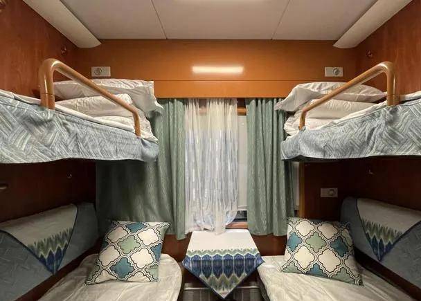改装后的“天山号”旅游专列拥有独特的酒吧车厢、娱乐车厢、餐厅车厢等等,再加上原有的舒适的软卧车厢,可以说体验感非常好。