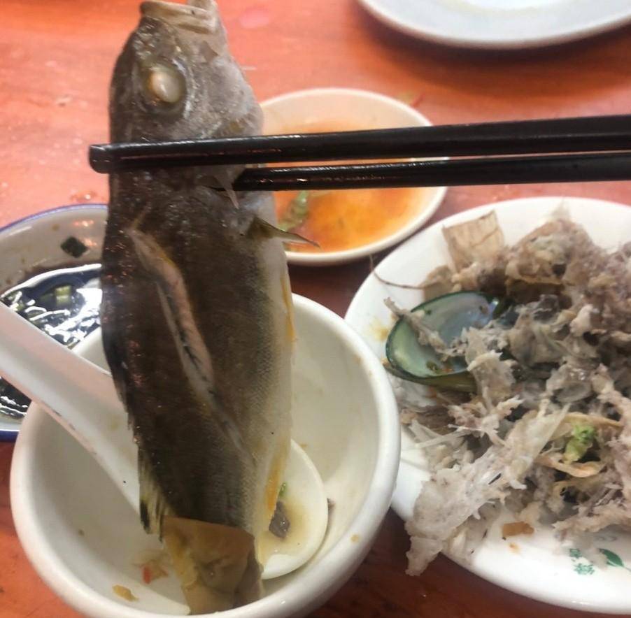他们吃饭的地方是在渔港的酒楼里,这边环境一般,但是很宽敞,而且海鲜都特别新鲜,同事说反正都要吃饭肯定要吃好一点的,所以没有像平时点白切鸡扣肉那些,这一餐基本都是以海鲜为主,让人吃得尽兴。