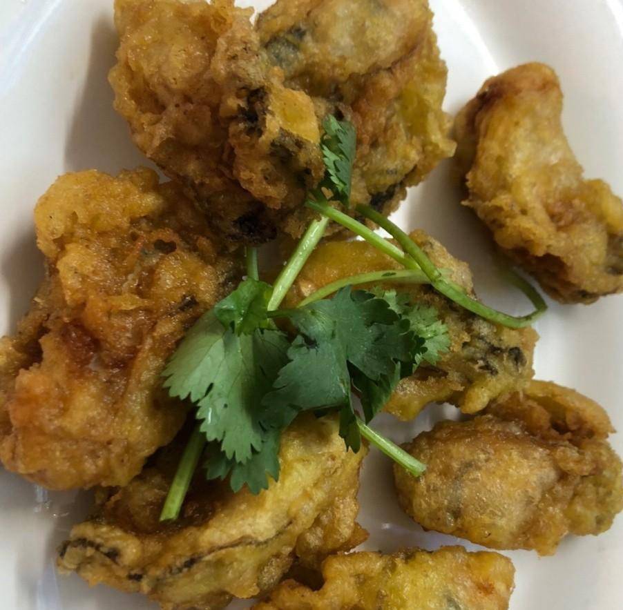 李依依的同事还订了爬爬虾和炸生蚝,这个爬爬虾个头大,基本保留原味,体现了海鲜的特点。炸生蚝用的生蚝一个个很肥美,炸到金黄,吃起来外酥里嫩,是很酥脆的脆浆,外皮酥脆里面还很肥美鲜嫩,一咬就爆汁,这样的酥炸生蚝真是无人不喜欢。