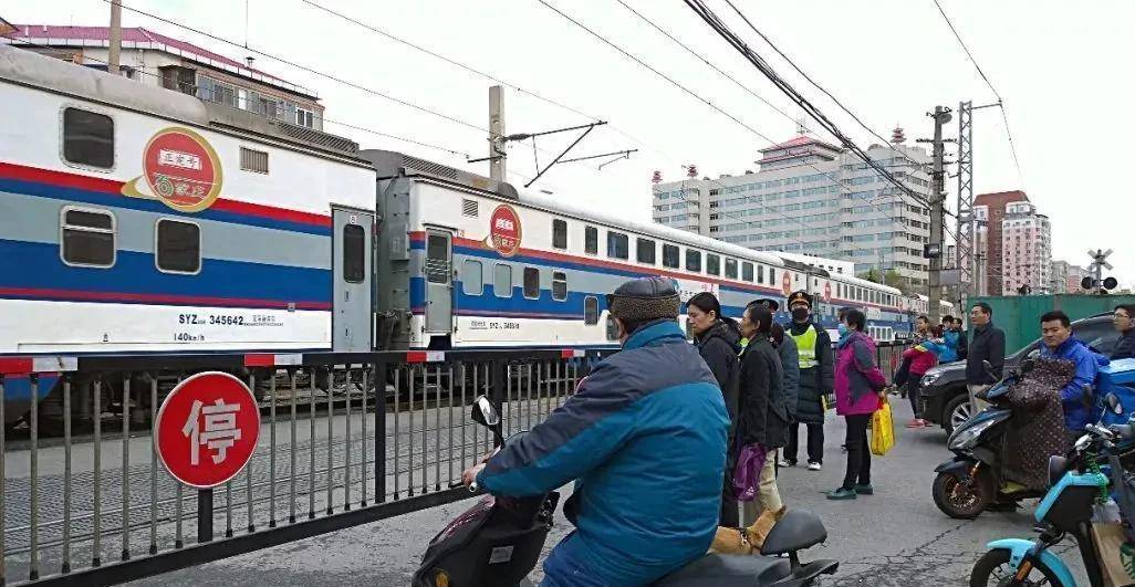 为了安全,于是,便在铁路道口两侧设有栏杆,火车通过之后行人和车辆再通过。