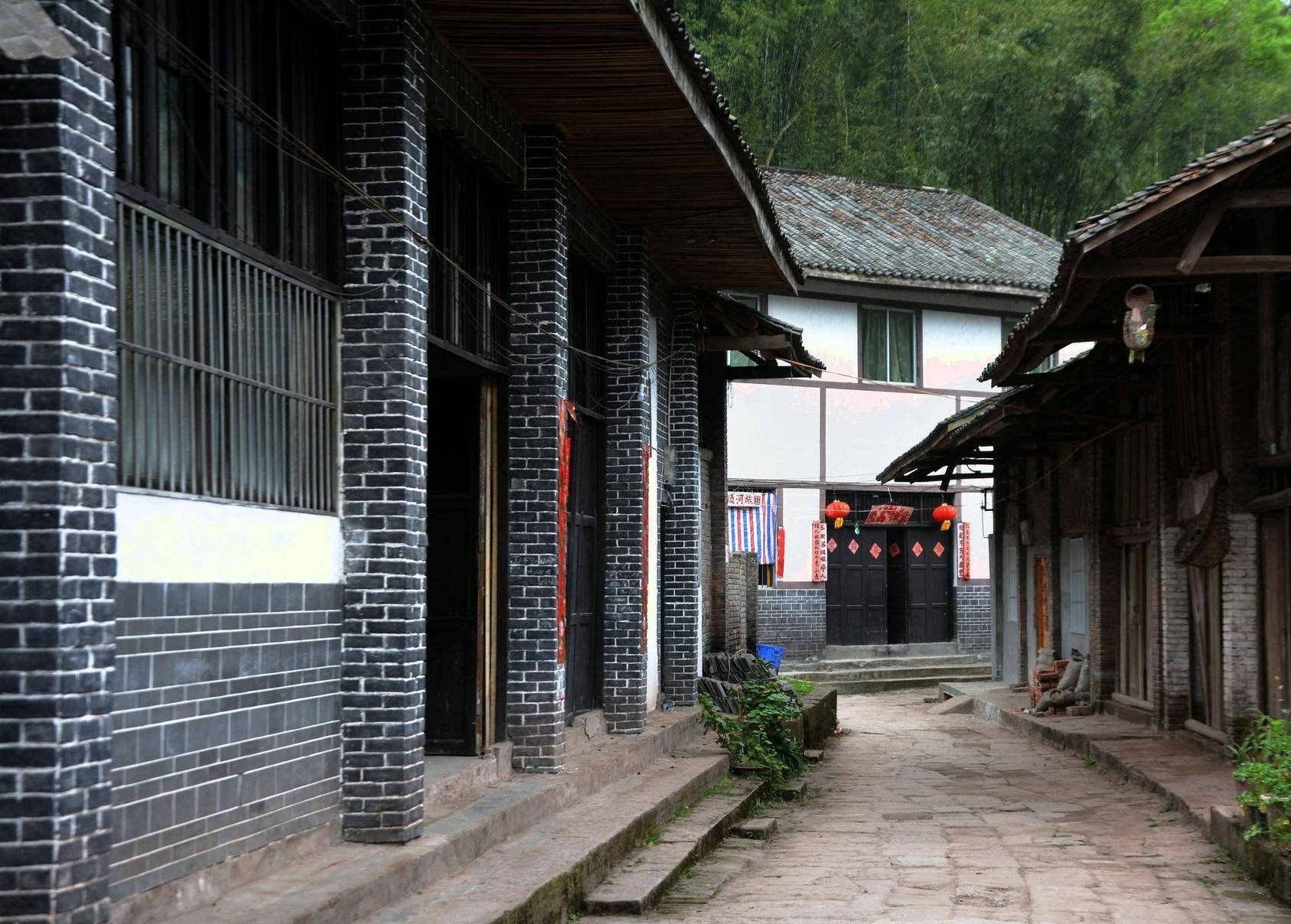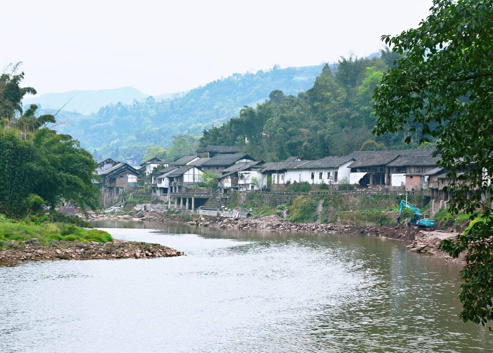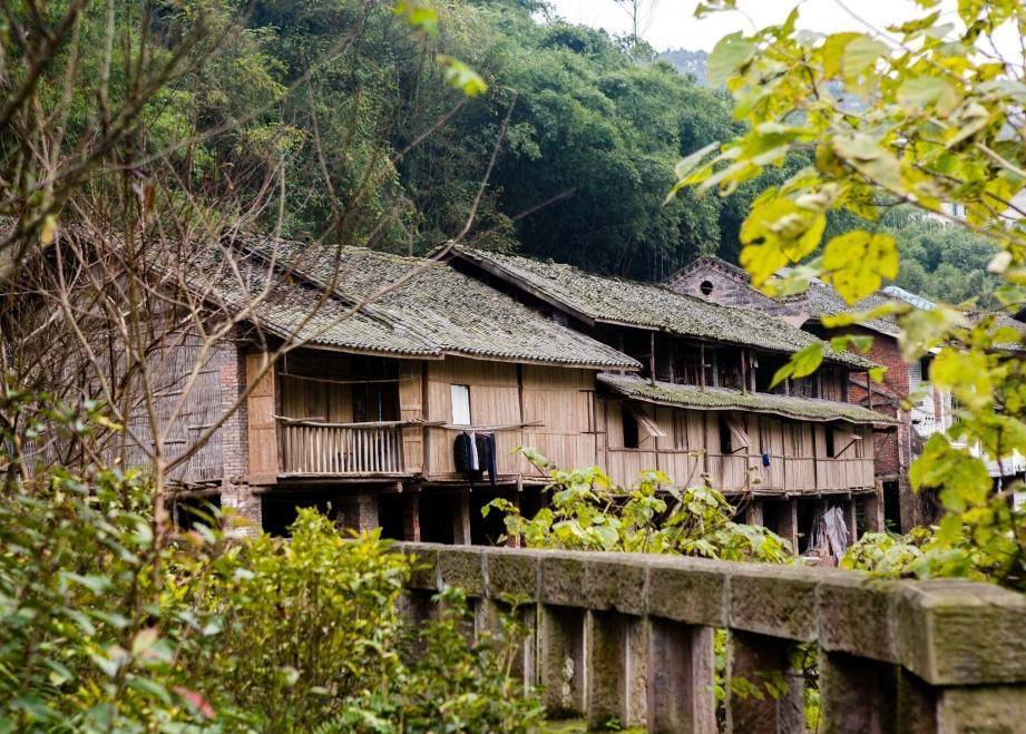 古镇占有较好的地理位置,依山傍水,一字形沿岸而建,临河的一面全部采用吊脚楼式建筑,独具风格,从空中俯瞰,如一条蛟龙,景色非常壮观,古镇内多数为具有明清风格的民居200多间,同时也极具川西南传统民居特色,不难想象当年商贸小镇“赶场”时的繁荣景象,充满了烟火气息,原生态古镇韵味,行走其中,宛若“穿越”百年回到川西古代。
