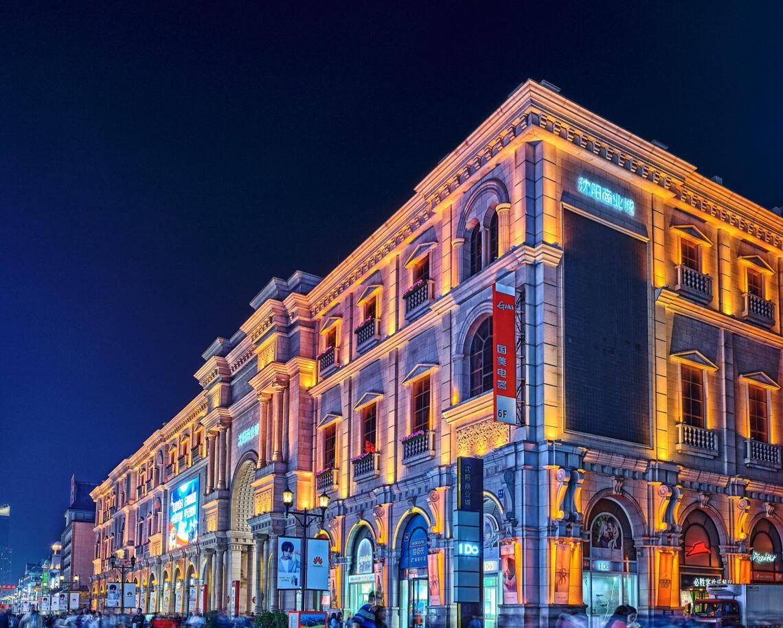 沈阳中街最早建成于1625年,距今已有约四百年的历史,被称为“东北第一街”,也是中国著名的十大商业步行街之一,街道两旁的店铺鳞次栉比,生意兴隆,呈现出一派欣欣向荣的风景。