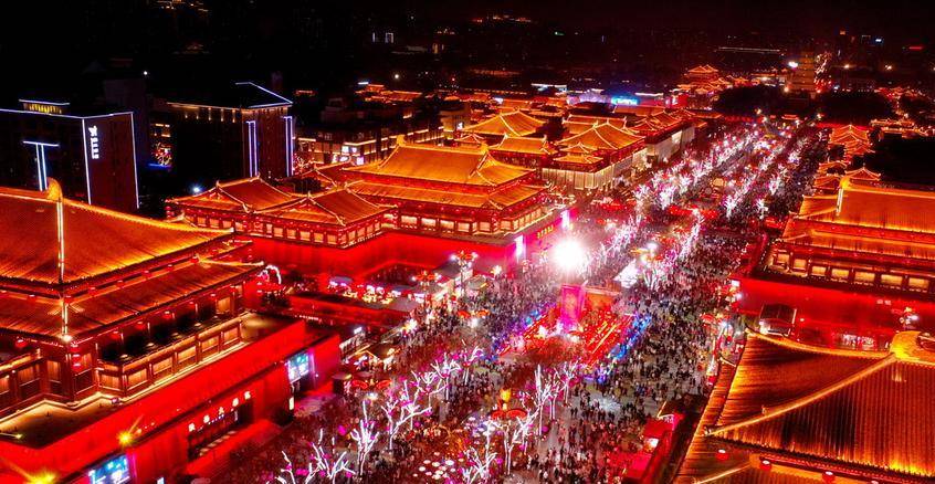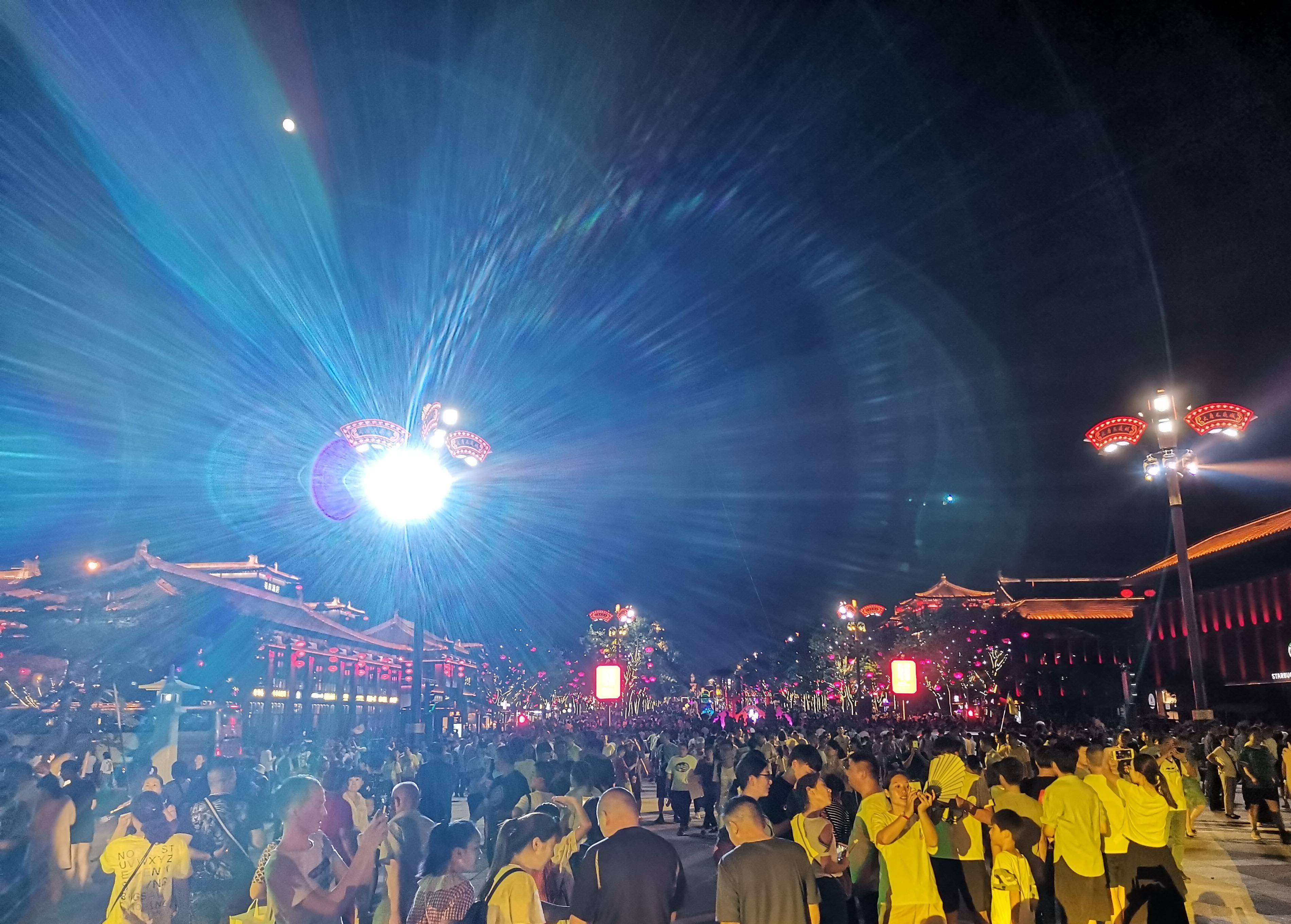 大唐不夜城,位于陕西省西安市雁塔区的大雁塔脚下,北起大雁塔南广场,南至唐城墙遗址,东起慈恩东路,西至慈恩西路。