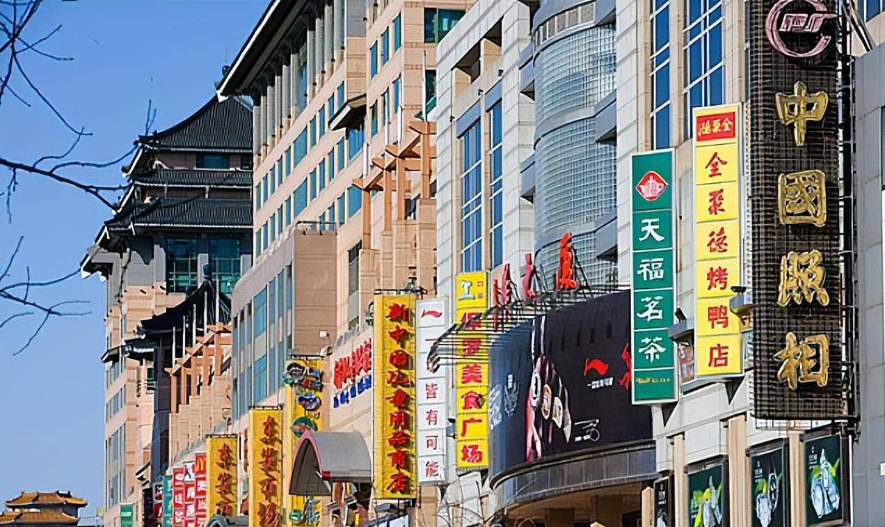 同升和、盛锡福、瑞蚨祥、东来顺、全聚德、翠华楼等许多老字号的店铺见证了北京的历史与巨变,新东安、百货大楼、新中国儿童用品商店等又体现了现代商业的辉煌,王府井步行街更像是一个万花筒吸引着游客们。