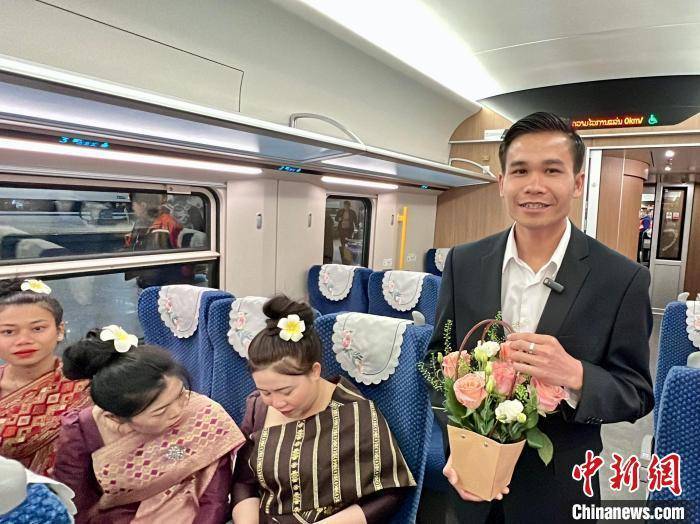 中新网昆明4月13日电 (记者 胡远航)“把呈贡的浪漫带到万象!”13日,乘坐D887次“复兴号”动车组由中国昆明前往老挝万象的旅客们,收到了一份特别的“城市伴手礼”——来自“亚洲花都”呈贡斗南的精美花束。随着列车缓缓驶出昆明南站,空气中飘起一阵芳香。