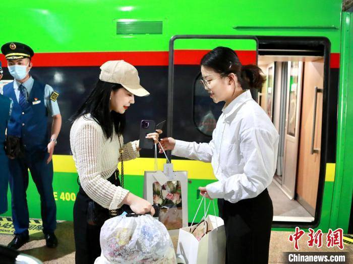 图为旅客收到来自“亚洲花都”的特别伴手礼。 呈贡区委宣传部供图