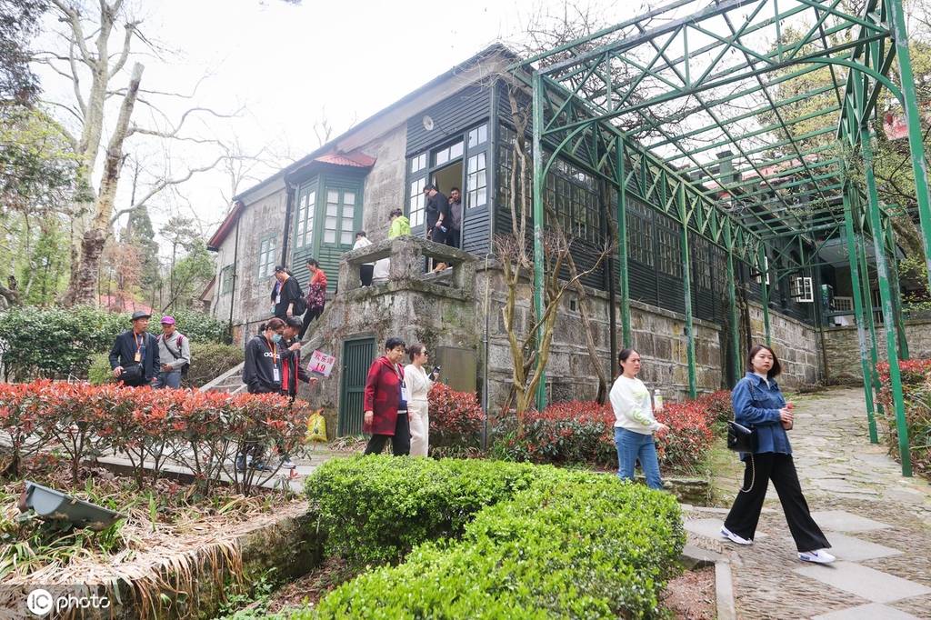 今年以来,江西省庐山旅游市场强势回暖。据最新数据统计,今年一季度,省外游客显著增加,境外游迎来重启,庐山景区累计旅游人次356.61万人次,同比2022年、2019年分别增长87.73%、118.89%。图为4月12日,游客参观美庐别墅。