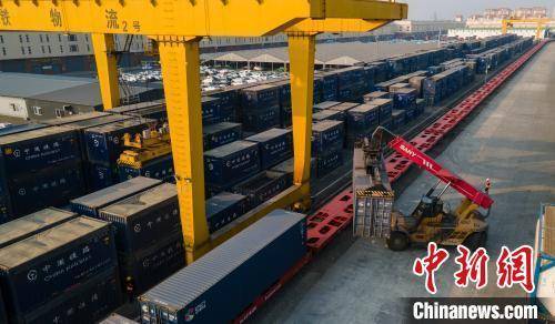 2021年12月24日,四川眉山国际铁路港正式开行中老铁路国际货运列车。图为当日的眉山国际铁路港货运列车吊装现场。(资料图片) 中新社记者 刘忠俊 摄