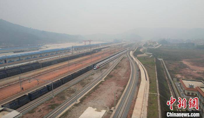 当日12时27分,中国昆明至老挝万象的D887次“复兴号”动车组列车缓缓驶入中国磨憨铁路口岸,停靠在1号站台。