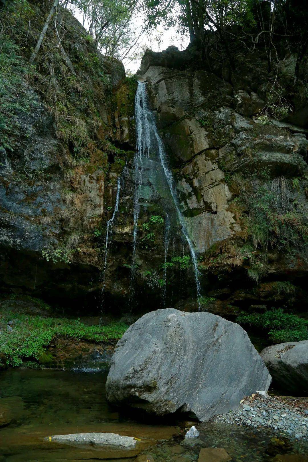 这里有山的俊美自然也少不了水的灵秀,路过一处小瀑布,水清冽,一靠近岩壁流水,阵阵凉意袭来,令人不由驻足享受这扑面而来的天然“空调”。