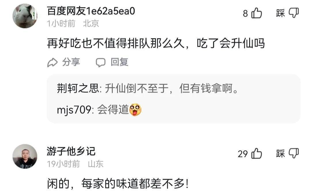 那到底是这家味道真的太好了,还是这些年轻人太闲了,虽然这家烧烤店是比较有名的,但是当地人说实际淄博的烧烤店那一家味道都差不多,你非要说那家好吃的不得了,实际都差不了多少,这些年轻人为了吃顿烧烤,甘愿站1个半小时,真的是不能理解,可能现在吃东西爱扎堆,哪里人多偏爱往那挤,吃了既不能升仙,还白白浪费了如此多的时间。
