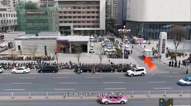 注意:从西面驶入万象城的车辆,需要在庆阳路广场东口处掉头后进入