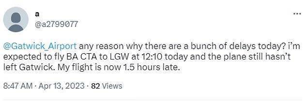 在社交媒体上,一位乘客说:“英国航空公司,所以,你取消了我今天的航班,我在戴高乐机场找不到任何客户服务人员,我打不通电话,我想知道我今晚将在哪里睡觉。”