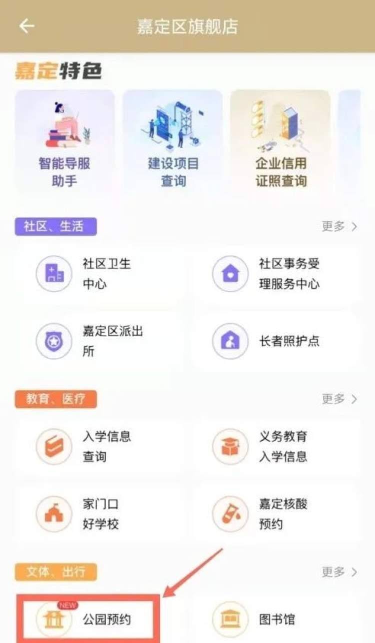 或下拉点击“公园预约”