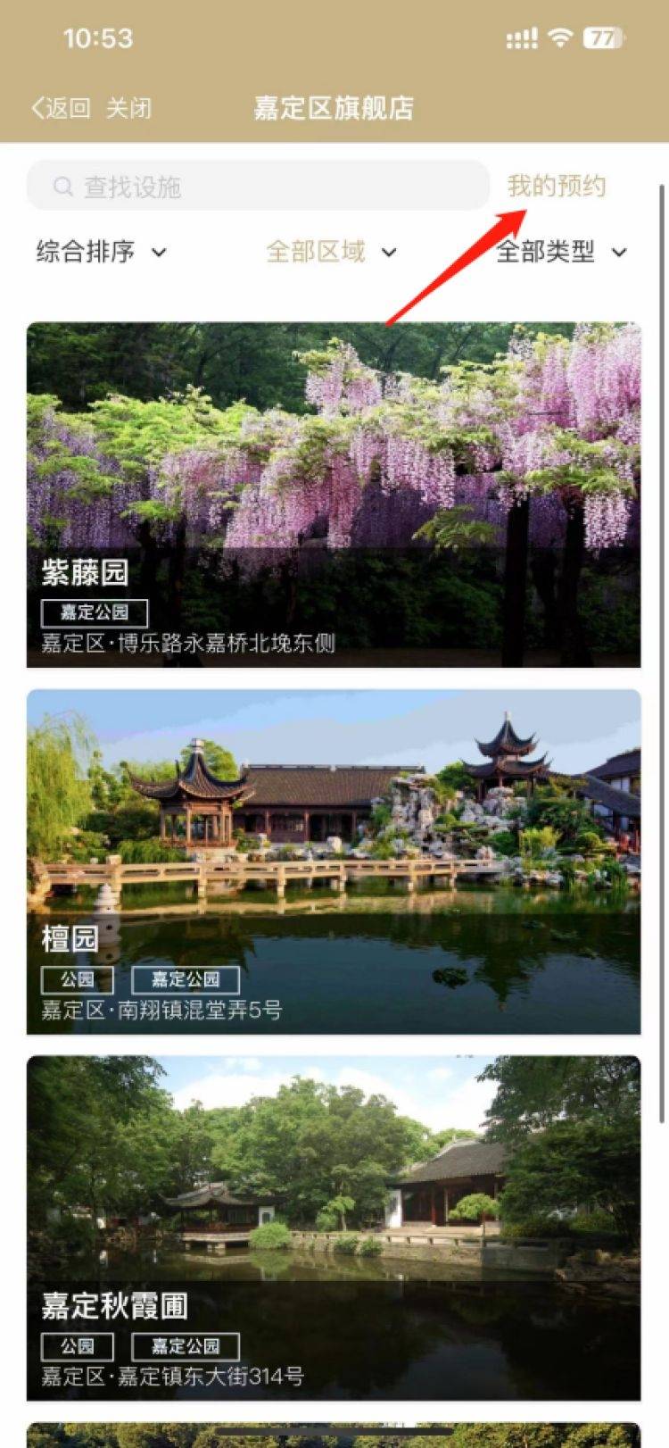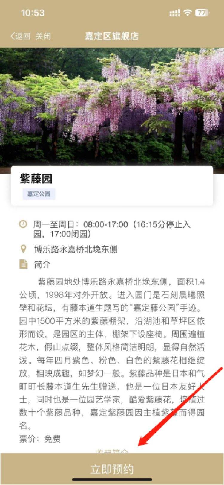 进入“嘉定紫藤园预约”