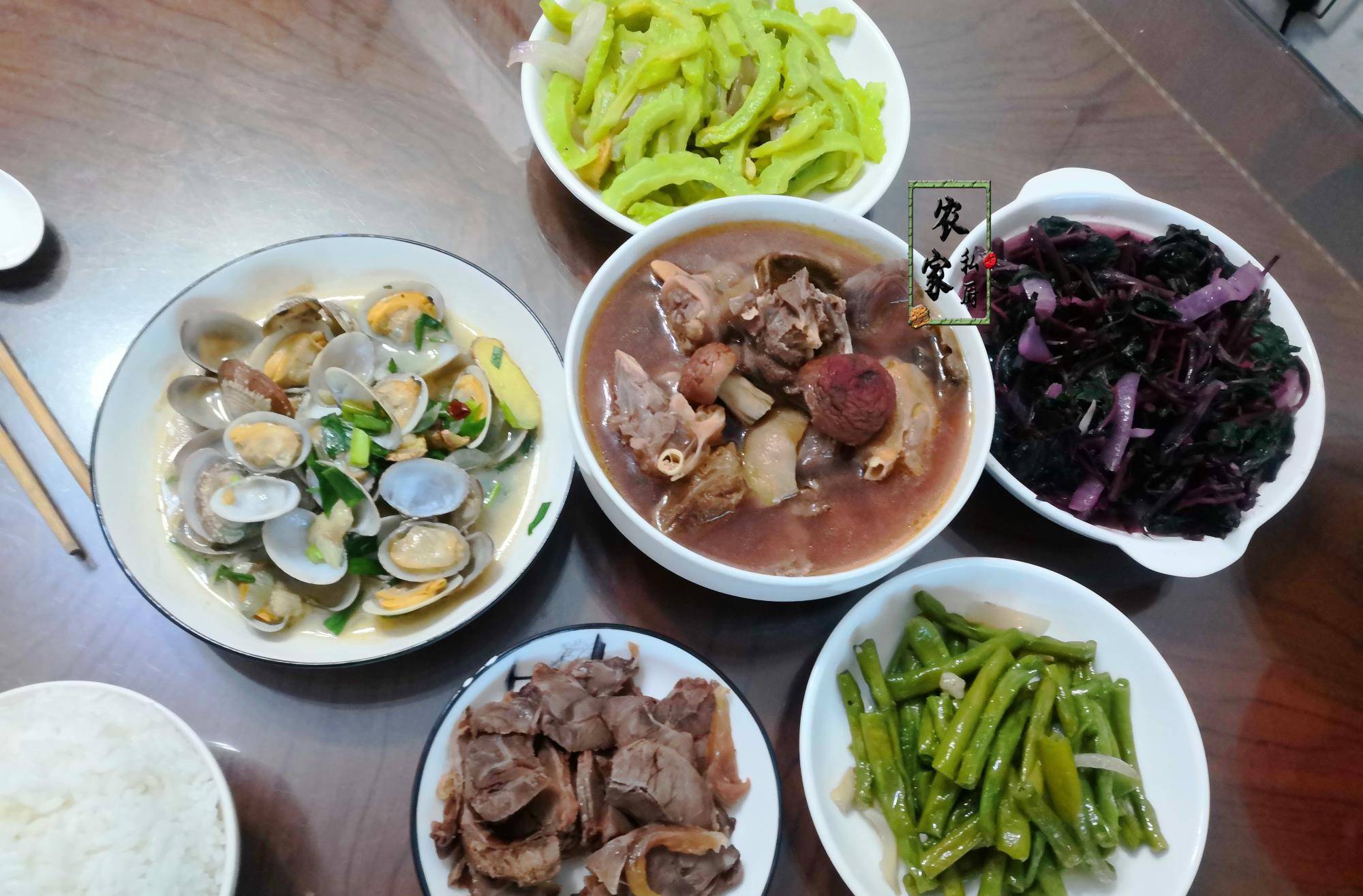 这样多的青菜应该很叫人难受,但是安徽一家人的口味较为清淡,在炎热的夏天吃点清爽去火的苦瓜却也很合适。而且这份苦瓜看着十分鲜嫩,味道应该也不错。