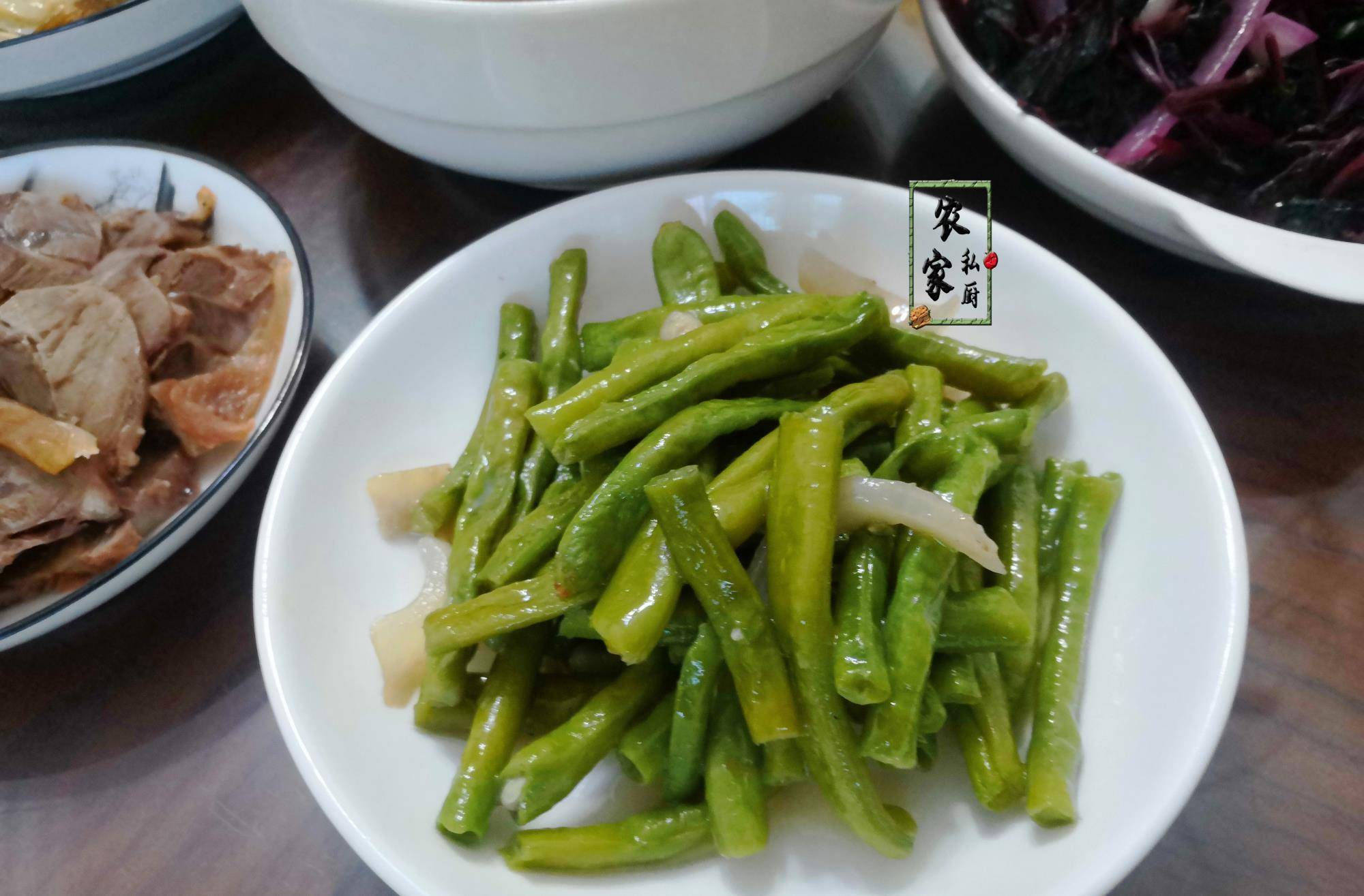2、炒豇豆:安徽这一家子的晚餐吃得确实很清淡,除了血菜之外还炒了一份豇豆。