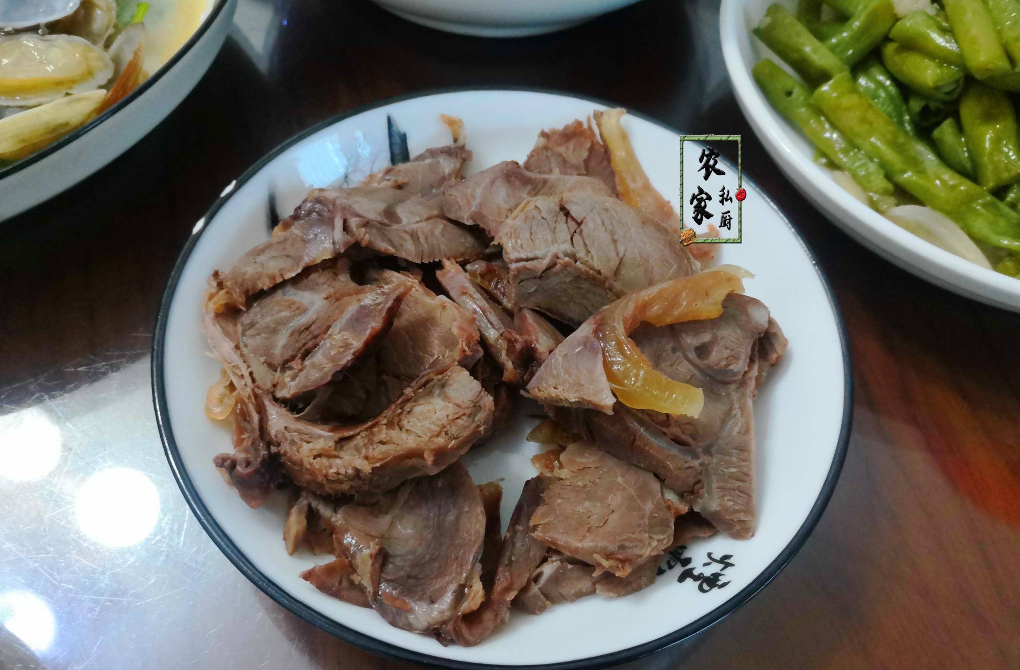 4、卤牛肉:荤菜终于来了,将新鲜的牛肉用卤汁卤好之后香味浓郁,与上面几道素菜搭配起来食用营养正好互补。